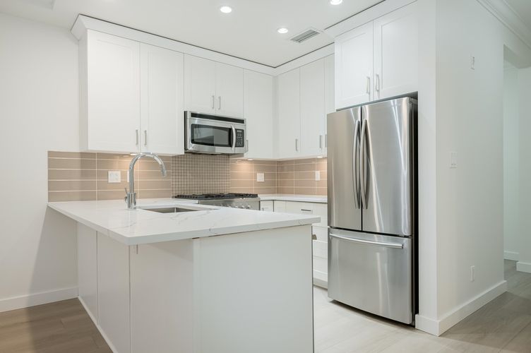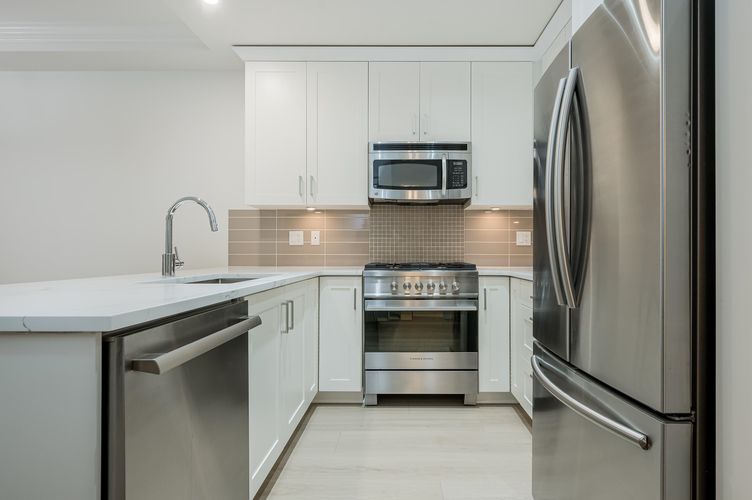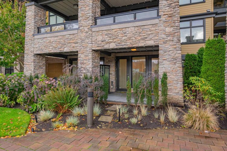 TSAWWASSEN SPRINGS - Discover the perfect blend of modern luxury and unbeatable lifestyle at Tsawwassen Springs. This exceptional 1 bedroom plus den unit has been meticulously renovated, offering a sleek maintenance free place to call home. This desirable ground floor unit is ideal for pet owners offering direct outdoor access. Freshly painting throughout with high-end laminate floors. New Quartz counter tops in kitchen and bathroom. Fisher/Paykel stove, Thermador dishwasher, new cabinet doors and hardware, new pot lighting and crown moldings. Bright open plan has lots of natural light. Geothermal heating/AC included in strata fees. Two secured parking stalls. Resort-like atmosphere with a Golf Course, Quinn's Restaurant & Bar, and a short drive to Tsawwassen Mills mall & BC Ferries.