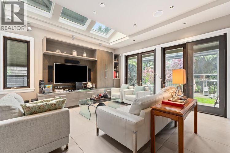 A timeless Kerrisdale masterpiece where elegance meets modern family living. The main level features formal living and dining, a chef’s kitchen with Miele appliances, waterfall island, and a bright family room opening to a covered patio and manicured south-facing garden. Upstairs offers three generous ensuited bedrooms, including a serene primary retreat with spa bath and custom dressing room. A skylit loft provides a stylish office and lounge, while the lower level with private entry features a media/karaoke room perfect for entertaining, plus guest or nanny quarters. Radiant heat, A/C, HRV, and smart home automation complete this exceptional residence. Perfectly positioned in one of Vancouver’s most sought-after school catchments Crofton House and Point Grey Secondary.