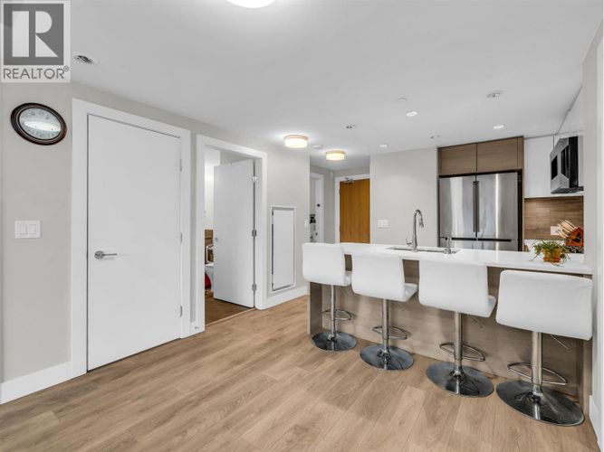 Experience an elevated lifestyle within this attractive property, located at 607 3451 Sawmill Crescent, Vancouver, BC, Canada. The residence is in great condition, ready for you to move in and create lasting memories. The living room is an inviting space, crowned by a tray ceiling that adds an architectural touch, creating an atmosphere of comfortable sophistication. Prepare culinary masterpieces in the kitchen, featuring stone countertops that provide a luxurious and durable work surface, a stylish backsplash that adds visual interest, a stovetop for efficient cooking, and a kitchen bar and peninsula, perfect for casual dining or entertaining. (id:26452)