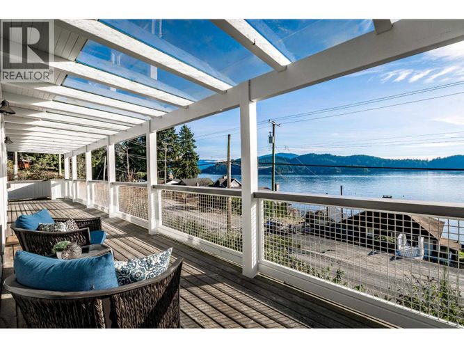 Panoramic Ocean Views in the Heart of Gibsons! This character-filled corner lot home on 7,700 sq. ft. offers stunning views of the ocean and Keats Island. The main floor features 2 bedrooms and bright, open living spaces with hardwood floors, warm wood accents, and a wood-burning fireplace. The kitchen boasts a breakfast bar and stainless steel appliances. Step outside to the covered wraparound patio or serene backyard, perfect for enjoying this coastal paradise. Upstairs, a loft with private patio provides versatile space for an office, guest room, or studio. A detached studio, abundant storage below with separate access, and daily views of passing boats complete this oceanside retreat-just minutes from the ferry terminal and a short stroll to Granthams Wharf and ocean walks. (id:26452)