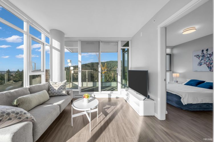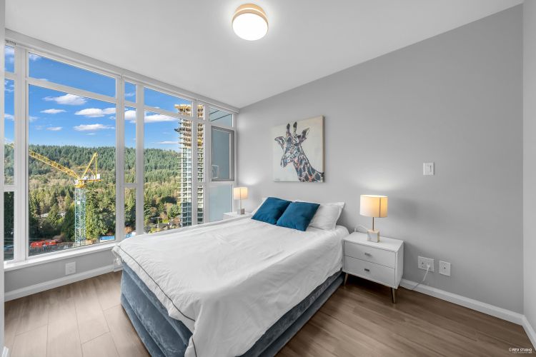 Rarely available Northwest-facing 2 bed, 2 bath corner unit at The Crown by Beedie. Bright, spacious layout with bedrooms and floor-to-ceiling windows showcasing beautiful mountain and city views. Features quartz counters, European s/s appliances, gas cooktop, and a large covered balcony. Well kept and move-in ready. Amenities include clubhouse, outdoor BBQ area, and guest suite. Steps to Burquitlam SkyTrain Station, Safeway, YMCA, shops, and restaurants; minutes to SFU and Lougheed Town Centre. 1 Parking (P1-46) and 1 Locker (P2-S5-062) included. Open House Dec 13&14 (Sat&Sun) 2-4 pm. (id:26452)