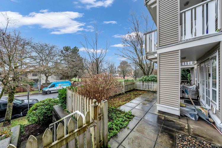 Discover this beautiful 2-bedroom, 2-bath home in the sought-after Zenia Gardens! Though on the ground level, the unit sits safely two storeys above street level for added privacy and peace of mind. Inside, enjoy a stylish and functional layout with granite countertops, gas stove, stainless steel appliances, in-suite laundry, and tasteful modern upgrades including newer cabinet doors, laminate flooring, and zebra blinds. Step outside to an expansive, fenced-in patio perfect for relaxing or entertaining. One parking stall right across from the elevator and one storage locker. Proactive strata management, New ROOF just done in 2024. Steps from shopping, the Canada Line/bus routes, walking distance to General Currie Elementary and Palmer Secondary. (id:26452)