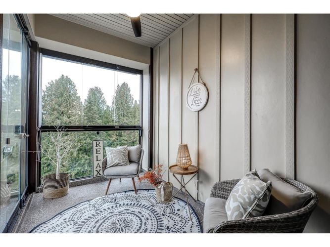 YORKSON PARK! TOP PENTHOUSE/ Unobstructed stunning MOUNTAIN VIEW! VIEW! / 12ft high ceiling/ / Total 880 sf - JR 2 BED + 1 BATH, Mountain view facing all year-round usable solarium w/ gas BBQ hook-up (Gas included in strata fee), Energy efficient heat pump / A/C in living room + bedroom, High-end Samsung appliances (including Samsung 5 burner gas cooktop) & quartz countertops. Heated flooring & anti-fog mirrors in the bathroom, Extra corner pantry, Solid wood closets and doors throughout, European laminate flooring throughout, 2 parkings + huge rolling door storage, Amazing location - 1.3 acre city park & right across from Calvoth Park & Ride, Hybrid building (wood + concrete), Sound -dampening insulation flooring. (id:26452)