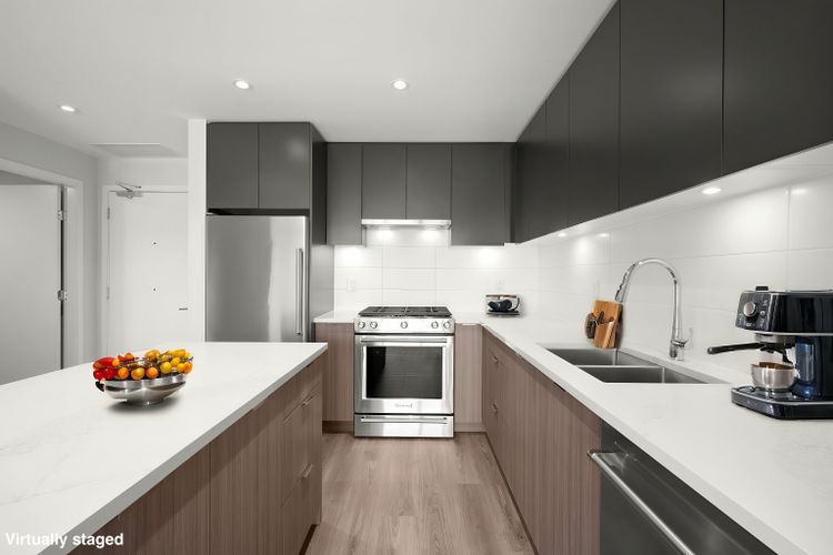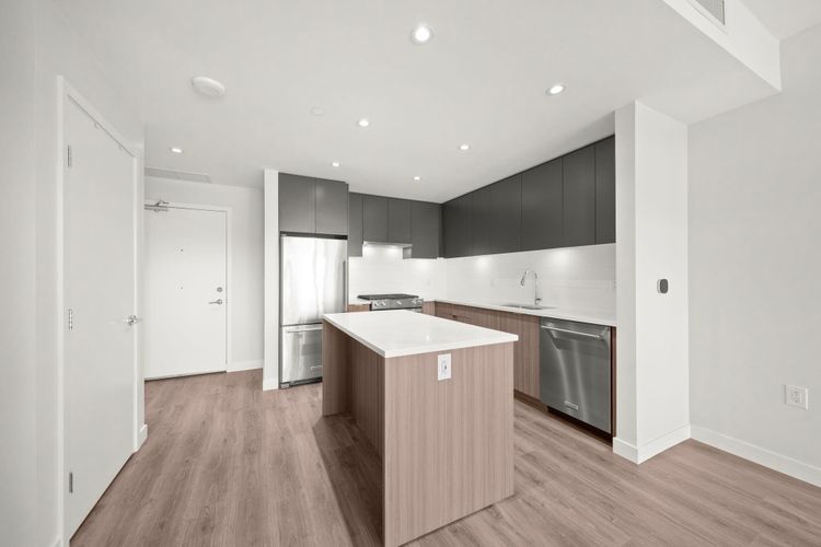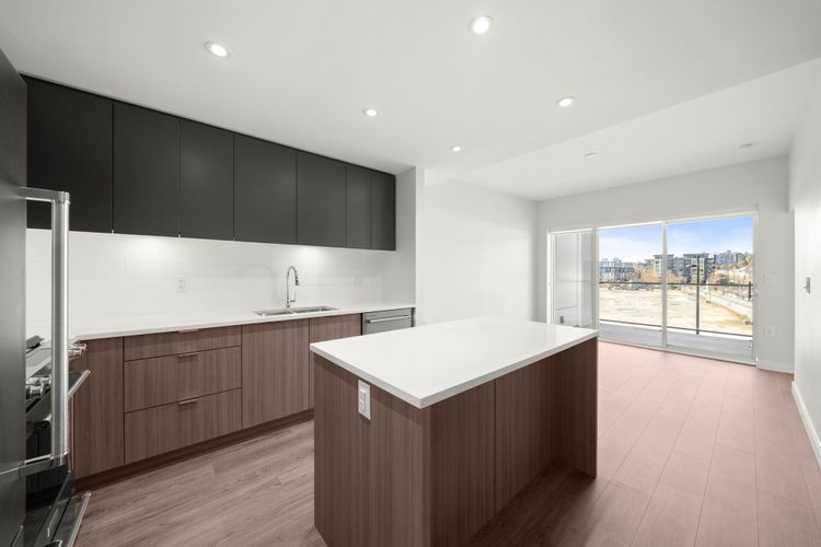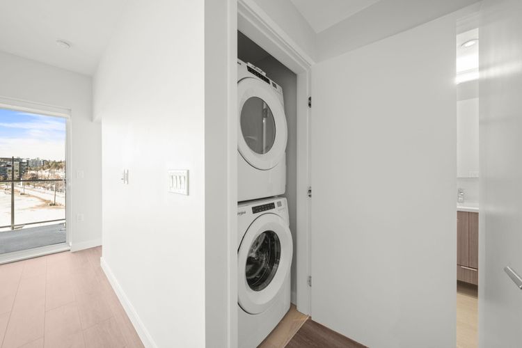 Welcome to Paradigm at River District! This west-facing 1 bed + den home offers a smart, open layout with a covered balcony for year-round enjoyment. The sleek kitchen features full-size stainless steel appliances, a gas cooktop and quartz countertops, plus full-size in-suite laundry and air conditioning for year-round comfort. Enjoy outstanding building amenities including a fully equipped fitness centre, yoga/TRX/boxing room, expansive courtyard with kids’ play area, spacious social lounge with ping-pong table and private booths, and a rooftop terrace with harvest table. The building also offers daytime concierge, bike storage and a convenient dog wash station. 1 parking and 1 large locker are included. Book your private showing today!!! OPEN HOUSE—MARCH 7TH & 8TH 2PM-4PM Sat & Sun