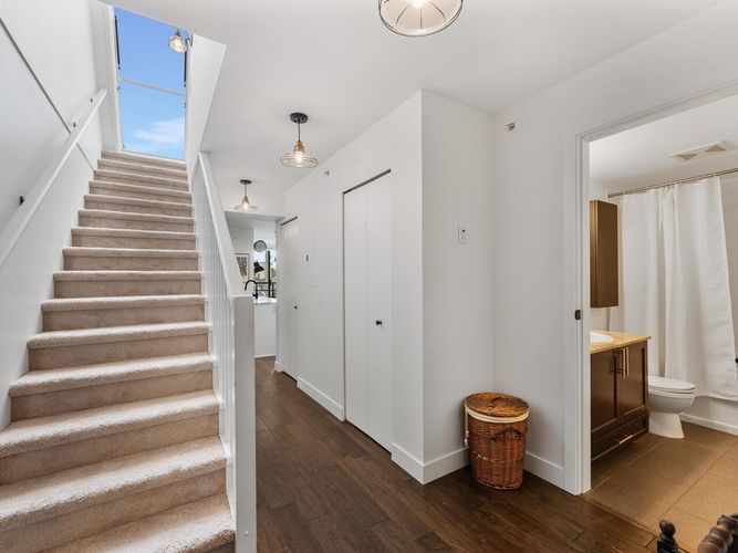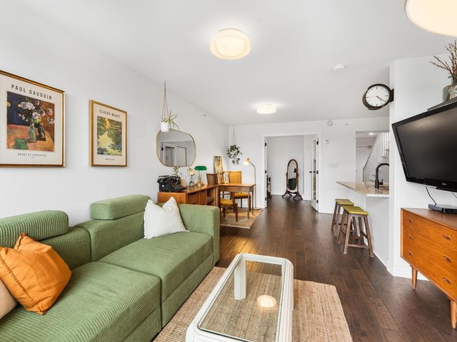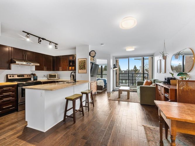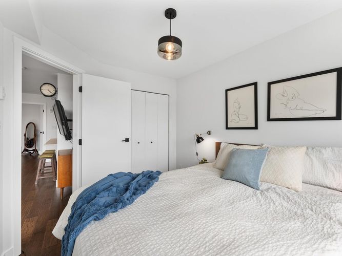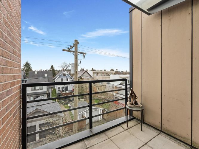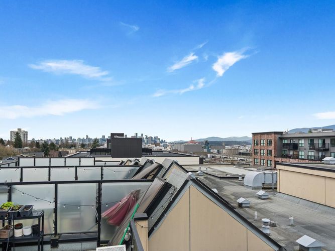 This one checks all the boxes! Welcome to the View- TOP FLOOR 2 BEDROOM, 1 BATH with exceptional 300 SQFT PRIVATE ROOFTOP DECK w/ panoramic MOUNTAIN, CITY & OCEAN VIEWS. Located on the QUIET SIDE of the building, w/ functional & thoughtful 748 SQFT layout & BRIGHT south exposure. BEAUTIFULLY MAINTAINED featuring spacious kitchen w/ SS appliances, breakfast bar, open concept dining & living, PARTIALLY COVERED BALCONY off the main floor, and a large in-suite STORAGE. Updates include designer paint, smoothed ceilings, updated lighting, engineered hardwood floor w/ premium underlay, brand new carpet & more! Truly MOVE-IN READY. 1 Parking. Pets & Rentals allowed. Ideally located in vibrant HASTINGS SUNRISE close to Pandora Park, Donald’s Market, cafes, shops & more! OPEN HOUSE SAT/SUN, 2-4.
