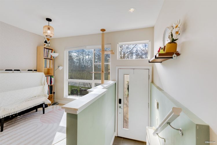 Quietly situated in one of the most private locations in the award-winning Breeze by Adera, this bright 2 bed + den townhouse backs onto serene green space with no direct rear neighbours. The open main floor features 9 ft ceilings, oversized windows, and a sun-filled living, dining, and kitchen area leading to a spacious balcony—perfect for relaxing or entertaining. Upstairs offers two generous bedrooms including a primary with vaulted ceilings and cheater ensuite. The lower level den with full bath is ideal for guests or a home office. Enjoy resort-style amenities including gym, sauna, and lounge. Prime Grandview location just steps to Morgan Crossing, shopping, parks, and top schools—perfect for comfortable everyday living.
