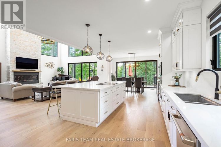 Top 5 Reasons You Will Love This Home: 1) Experience tranquil riverside living with 55' of direct frontage on the scenic Nottawasaga River, set on a deep, 290' treed lot, along with a private 5x20 dock, ideal for kayaking, paddleboarding, or casting a line, with Georgian Bay just moments away 2) This newly built custom home is a visual standout from the moment you arrive, featuring soaring 19' ceilings, oversized windows with views of the river and forest, and a striking wood staircase with glass railing creating an unforgettable entrance, along with a double garage and spacious driveway combining convenience with serious curb appeal 3) Designed to impress, the chefs kitchen offers ceiling-height cabinetry, quartz counters, under-cabinet lighting, thoughtful extras like built-in spice racks and garbage organizers, a large island with a built-in cooktop, premium built-in appliances, a coffee station, beverage fridge, and walk-in pantry complete the perfect space for gatherings of any size 4) Enjoy seamless indoor-outdoor living with double 12'x8' patio doors opening onto a glass-railed deck nestled among mature trees, along with a cozy stone gas fireplace, private home office, elegant powder room with heated floors, a practical mudroom, and engineered hardwood flowing throughout the main and upper levels for a cohesive upscale feel 5) The primary suite presents tray ceilings and a luxurious 5-piece ensuite with heated floors, rainfall shower with body jets, soaker tub, smart toilet, and smart mirror, alongside two additional upper level bedrooms, each featuring their own private ensuites, and a finished basement adding more versatility with two bedrooms, a kitchenette, gym/recreation space, and a 5-piece steam shower spa bathroom, with heated floors, for the ultimate in comfort and relaxation. 3,279 above grade sq.ft. plus a finished basement. (id:26452)