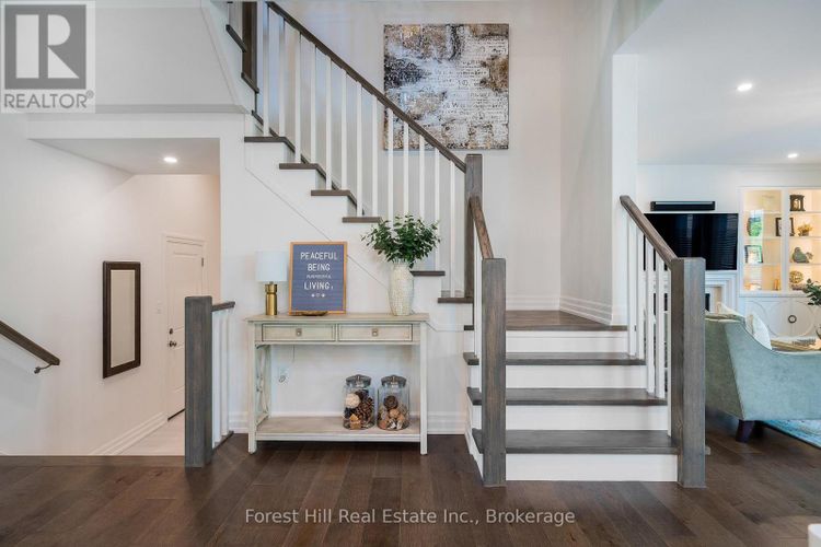 Welcome to your dream home, a breathtaking 4-bedroom, 4.5-bathroom, two-story masterpiece built in 2019, designed for unparalleled luxury and comfort. Nestled in a serene setting, this residence boasts stunning curb appeal with professionally landscaped grounds and evergreen trees ensuring backyard privacy. The expansive composite deck and charming outdoor wood burning fire bowl, surrounded by lush landscaping, create an idyllic space for relaxation and entertaining. Step inside to a light-filled, open-concept main level featuring gleaming hardwood floors and a cozy natural gas fireplace in the living room, perfect for gathering with loved ones. The chef-inspired kitchen is a culinary haven, equipped with high-end appliances, sleek Cambria quartz countertops, a scullery with additional storage and sink, and premium light fixtures that elevate the ambiance. Convenience abounds with a beautifully finished main-level laundry room boasting wall-to-wall built-ins and a central vacuum system for effortless cleaning. Upstairs, hardwood floors flow through the hallway and into the primary bedroom, a true sanctuary with an oversized walk-in closet and a luxurious 5-piece ensuite bathroom, complete with a soaker tub and glass-surround walk-in shower. All four bedrooms are generously sized, with a large shared bathroom featuring a double-sink vanity and tub-shower combo, while the second bedroom enjoys its own ensuite with a spacious vanity and shower-tub combo. The fully finished basement, with durable luxury vinyl plank flooring, is an entertainers delight, offering a kitchenette, a full bathroom, a versatile living space, and a home gym area. This home also includes a 3.5 car garage with natural gas heating for year-round comfort. With every detail meticulously crafted, from the central vacuum system to the sophisticated design, this property blends modern elegance with unmatched functionality. Don't miss your chance to own this extraordinary home . (id:26452)