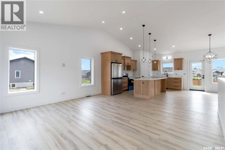 A Fresh Start in Waldheim — Where Space, Comfort & Small-Town Peace Come Together Just 30 minutes from Saskatoon, tucked into the growing and welcoming community of Waldheim, this beautifully crafted 1,399 sq ft bungalow by Armour Homes LTD is ready to become someone’s next chapter. Whether you're dreaming of more space, a calmer pace, or a home that finally feels like you, this one delivers both comfort and elegance in every detail. The moment you step inside, the home feels open, uplifting, and thoughtfully designed. Soaring 13-foot ceilings in the kitchen and living area instantly create a feeling of luxury and openness, while the 9-foot ceilings in the bedrooms bring softness and coziness—offering the perfect balance of sophistication and comfort. Large windows allow sunlight to move through the space beautifully, creating a warm and inviting atmosphere from morning coffee to evening unwinding. Modern finishes like quartz countertops, stainless steel appliances, luxury vinyl plank flooring, and porcelain tile elevate the home while keeping maintenance easy and stress-free. Brand new washer and dryer will be added or a credit of $2000 for new washer and dryer. With three spacious bedrooms and two full bathrooms, there’s room to grow, host, or simply enjoy life comfortably. The generous lot offers space for gardens, fireside evenings, pets, kids—or simply room to breathe. The concrete driveway is already complete, and the builder offers the option to finish the basement and deck so the space can evolve with you. Living here means enjoying the quiet charm of small-town living without giving up convenience. Waldheim offers community, safety, fresh air, and room to live the lifestyle you’ve been imagining—while Saskatoon remains an easy drive when needed. If you've been searching for a home that feels new, inspiring, and deeply comfortable — this one is worth experiencing in person. ?? Contact your agent today to schedule a private showing . (id:26452)