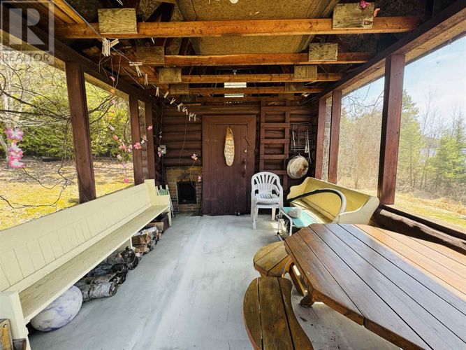 Seize the opportunity to own a breathtaking property with pristine 66' sand beach shoreline on the prestigious Cliff Lake. Located in unorganized territory, just 20 minutes south of Perrault Falls, this idyllic retreat is a dream come true for outdoor enthusiasts and nature lovers alike. Enjoy unparalleled fishing and the serene tranquility that only nature can provide. This remarkable property features a stunning log home built in 1988, showcasing cedar shank siding on the upper level. Spanning over 1,800 sq. ft., the home is fully insulated and designed for comfort. On the main level, you'll be greeted by a spacious entryway leading to a versatile office room. The open-concept kitchen, dining, and living area boasts beautiful hardwood flooring throughout. The living room is anchored by a striking dual-sided fieldstone fireplace, perfect for cozying up in the primary bedroom or relaxing in the living space. The main level also includes a luxurious full bathroom, complete with a jetted tub, a stand-up shower, and a his-and-her vanity. Upstairs, you'll find a generous family/study area that opens onto a charming three-season sunroom with a walk-out balcony, offering stunning views of the lake. The second level also features a spacious bedroom and a utility room. The property comes with several outbuildings, including a generator shed, a detached garage, and a sauna hut, enhancing your outdoor living experience. Don't miss this chance to own a slice of paradise on Cliff Lake. Your dream property awaits! (id:26452)