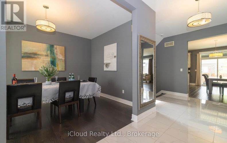 Welcome to this executive 4-bedroom, 4-bathroom detached 2-storey home, built in 2016 and located in the prestigious Fernwood Estates subdivision in Niagara Falls. Step inside to find rich, dark hardwood flooring throughout both the main and second floors, with no broadloom anywhere in the home. Nine-foot smooth ceilings and pot lights on the main level create a bright, upscale feel, while the impressive open-to-above foyer sets the tone for the rest of the home. The gourmet kitchen is a chef's dream, featuring granite countertops, a stylish backsplash, a breakfast bar, and stainless steel appliances. Porcelain tiles highlight the foyer and spacious laundry room, which also provides a walkout to the double-car garage. Upstairs, the large primary suite offers a luxurious 5-piece ensuite bath and a walk-in closet. Three additional well-sized bedrooms share a third 4-piece bathroom. The finished lower level, accessible via a separate walk-up through the garage, offers vinyl flooring, a large recreation/family room, a potential fifth bedroom, a full 3-piece bathroom, and a cold room for extra storage. The exterior is equally impressive, featuring a stone and stucco finish, an exposed aggregate driveway with parking for four vehicles, and a covered concrete patio ideal for outdoor entertaining. Built with style and functionality in mind, this 2016 home combines elegance, comfort, and premium finishes throughout. (id:26452)