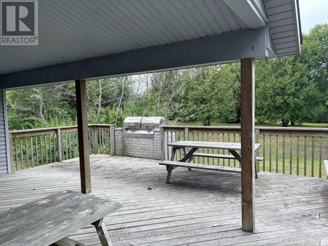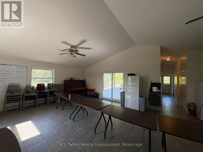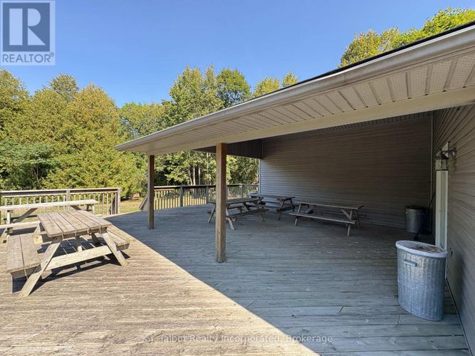 Introducing a unique 13-acre riverfront property close to Goderich, offering picturesque river views and directly adjacent to Lake Huron and to a marina. This serene, mature treed setting features a winterized detached building with significant potential as a cottage, previously utilized as a recreational and community hall. The building's exterior is finished with vinyl siding and aluminum soffit and fascia, complemented by a large covered deck and a dedicated area with built-in BBQs. Inside, the building is insulated and drywalled, boasting a vaulted ceiling with pot lights, and an open-concept great room with an oak kitchenette. Patio doors provide direct access to the covered deck area. The building also includes two 2-piece bathrooms and a utility room equipped with an owned hot water tank, water softener, and pressure tank. The property is serviced by EBB heating, a septic system, and a drilled well. Ample parking is available. Residents will enjoy convenient access to various outdoor activities such as trails, fishing, swimming, canoeing, and kayaking, along with easy access to Goderich's amenities. Please note that this property is accessible by appointment only due to seasonal gated access. (id:26452)