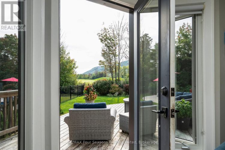 Nestled at the end of a quiet cul-de-sac and set on nearly an acre (0.969), this exceptional 4-bedroom, 3-bathroom residence offers the perfect blend of privacy, luxury, and lifestyle. Backing directly onto the 14th hole of the prestigious Georgian Bay Golf Club, the property is surrounded by mature landscaping and serene natural beauty. Inside, sunlight pours through expansive windows, highlighting tranquil views of the gardens, pool, and fairways. The thoughtfully designed kitchen features Caesarstone counters, induction cooktop, walk-in pantry, and warm hickory floors, flowing seamlessly into inviting living spaces anchored by two gas fireplaces. A built-in Sonos sound system ensures your favorite music follows you throughout the home. The main floor includes a versatile bedroom with walkout access to the deck ideal as a guest suite or convenient primary. Upstairs, two spacious bedrooms accompany the luxurious primary suite, complete with spa-inspired ensuite, walk-in closet, and a private deck overlooking lush greenery perfect for morning coffee or evening relaxation. The newly renovated lower level expands the living space with fresh finishes, vinyl plank flooring, and a cozy fireplace. With direct walkout access to the backyard, its the ultimate après-ski lounge or retreat after a day on the course. Outdoors, the home shines as a private oasis designed for relaxation and entertaining. Pebble Tec in-ground pool, hot tub, expansive deck, and fully fenced yard provide both comfort and peace of mind. Blending sophistication, comfort, and the best of Georgian Bay living, this one-of-a-kind retreat is a rare offering not to be missed. (id:26452)