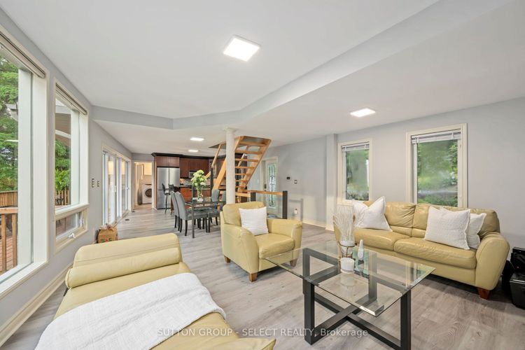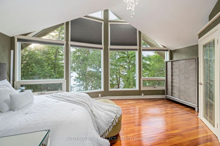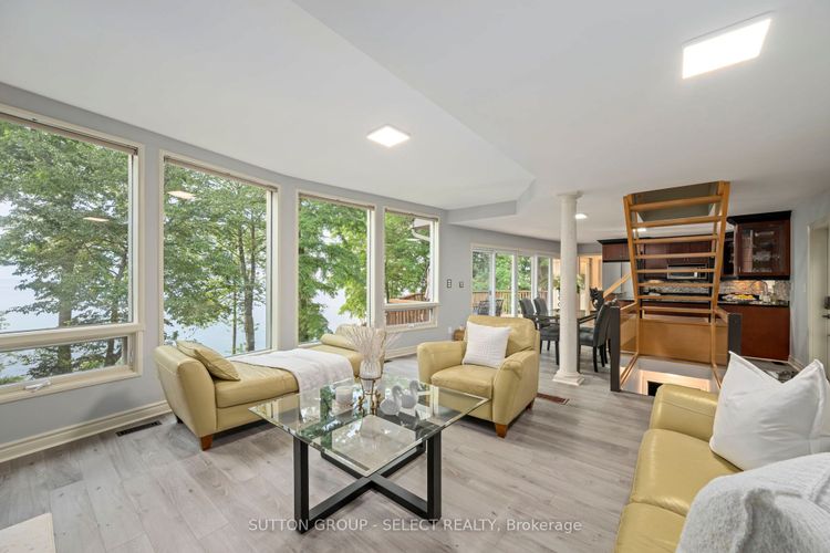 A RARE OPPORTUNITY TO OWN ONE OF LAMBTON SHORES' MOST EXCLUSIVE BEACHFRONT ESTATES | 222 FEET OF PRIVATE SHORELINE ON AN ACRE OF PRISTINE, SECLUDED BEAUTY. Perched on a natural cliff and surrounded by lush greenery and mature trees, this property offers breathtaking scenery, lake views, and year-round comfort. This beautifully updated and maintained 3-bed, 2-bath home is flooded with natural light and lake views from every angle. The main floor features expansive windows, sliding doors to a wraparound deck, a cozy living room with a fireplace, main floor laundry, and a full bath. Upstairs, the spacious primary bedroom offers panoramic lake views and a stunning skylight ensuite bathroom. A secondary bedroom includes a private balcony overlooking the water. Your third bedroom features a beautiful, expansive skylight whether you use it as a home office or a cozy bedroom, you'll enjoy the serene views all day long. The walk-out basement is unfinished, offering endless potential for customization. Major updates include roof + 2 skylights (2022 with transferrable warranty), furnace & A/C (2020), and ravine & rock wall reinforcement (2019 & 2021). Two beautiful lookout points for enjoying sunrises and sunsets. Private boat launch suitable for Sea-Doos, kayaks, and paddle-boards an uncommon luxury along this shoreline - nearby public launches for larger vessels. The expansive lot has been cherished for family gatherings, yoga sessions, and even camping offering a unique lifestyle experience surrounded by nature and privacy. There's endless parking available, perfect for hosting friends and extended family. Just minutes from the town of Forest, offering shopping, Community Health Centres, schools, parks, golf courses, and farmers markets. Enjoy small-town charm with proximity to Grand Bend, Sarnia, and Lake Hurons most picturesque shoreline. Private shoreline with no public access - limited deeded passage preserves exclusivity. The place you feel the moment you arrive. (id:26452)