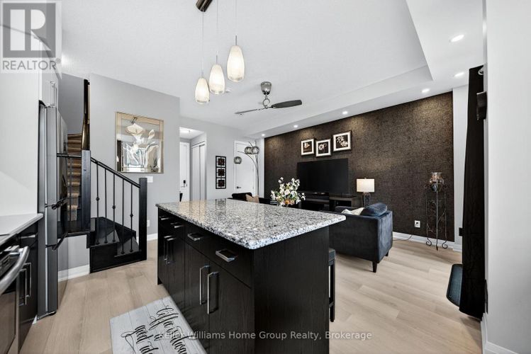 Contemporary Urban Style Living at its finest, this stunning 3 level townhome is located in the highly desirable Metalworks community, just a short walk to downtown Guelph, the Go-train station and all the restaurants, entertainment and shopping that downtown Guelph has to offer. As you approach the front of the home the first thing you will notice as you head up the steps is the large terrace a perfect place to sit and relax as well as great space to entertain your family and guests. Inside you will love the contemporary styling, neutral decor, high ceilings, the custom designed kitchen with quartz counter tops, centre island, and stainless appliances. The kitchen is open concept to main floor living area, there is large storage pantry, a 2 piece washroom, hall closet and access to the parking garage. Head up to the second level and there is a generous size family room, a good-sized bright bedroom and modern 4-piece bathroom, a storage room and a work/ hobby room or extra storage room. Head up to the third level you will find a nice bright primary bedroom with a private balcony, a spacious ensuite bathroom with soaker tub, and large glass shower, and a good-sized walk-in closet with a infra-red sauna. On the third level you also have the benefit of the full laundry room complete with washer dryer.This unit also has the benefit of 2 INDOOR PARKING SPACES, which is a rare find. Being part of the Metalworks community, you can enjoy all the amenities, including a gym, speak easy lounge, function room with kitchen, guest suite, pet spa, barbecues, terraces, green space and much more. This is a fabulous location, just steps away from Springmill Distillery, the river walk area, easy access in and out of the property for dog owners, extra parking outside the unit, this property is a rare find and must be seen. (id:26452)
