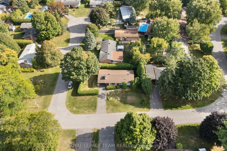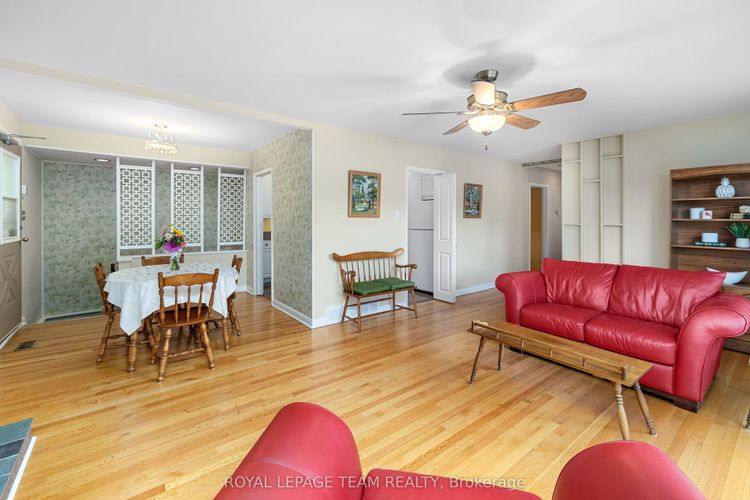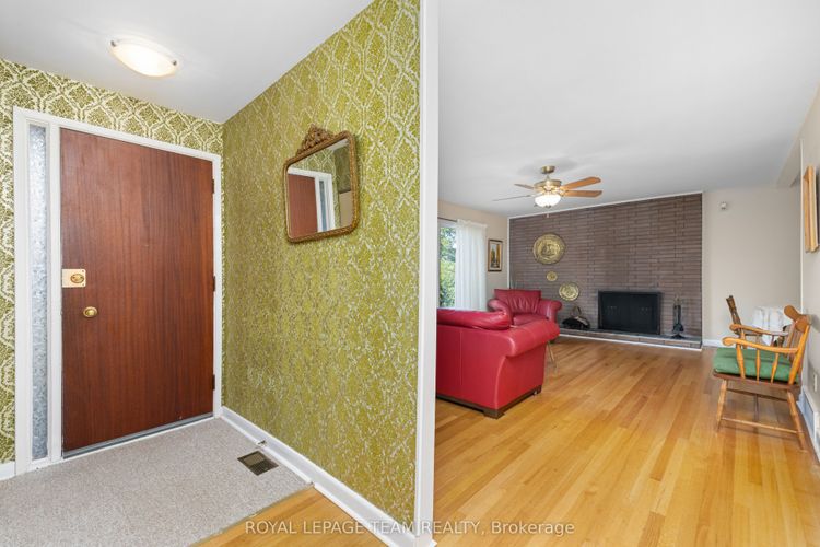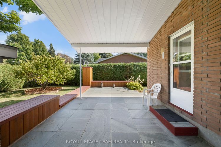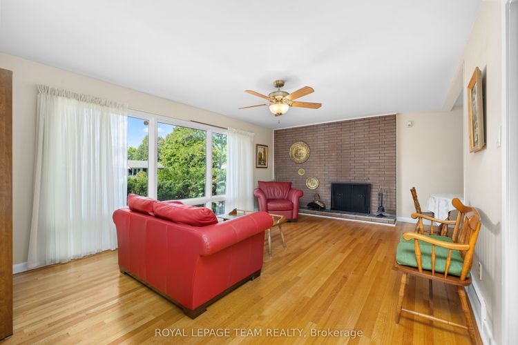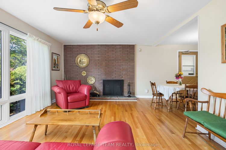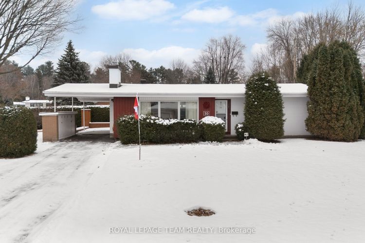 Welcome to 30 Ellery Crescent, a lovely 3 bedroom, 1.5 bathroom home located on a corner lot in the heart of Lynwood Village, Bells Corners. Lovingly maintained by the same owner for 56 years, this property sits on a quiet, child-friendly street. The L-shaped living and dining room features a brick-surround wood-burning fireplace and is enhanced by a large picture window that fills the space with natural light. The adjacent kitchen, updated in 2015 and featuring cork flooring, quartz countertops, ample cabinetry, and room for a breakfast table, provides both function and warmth (fridge replaced in 2021). Three well-proportioned bedrooms and a renovated four-piece bathroom with quartz counters and a linen closet complete the main level, where strip oak hardwood flooring flows throughout most of the space. The lower level offers exceptional versatility, including a spacious recreation room a legal egress window, a laundry area with bar top and sink, and a den that could easily serve as a fourth bedroom, complete with its own two-piece bath. Additional features include a storage room with built-in shelving and a utility room with tiled flooring and space for a workshop. Outdoors, the private back and side hedged yards with slate patio provides the perfect setting for relaxation or entertaining, while the carport offers extra storage convenience. Notable updates include roof (2018), furnace and A/C (2015, contract to be paid out by the seller before closing upon request), hot water tank (2015, rented), washer and dryer (approx. 2020), gutter covers (2013), windows, and central vacuum with attachments. Ideally situated just steps from the Entrance Pool, the NCC Greenbelt with miles of trails, and within walking distance to schools, churches, shops, restaurants, and all the amenities of Bells Corners, this home offers both comfort and convenience. Quick closing is available! (id:26452)