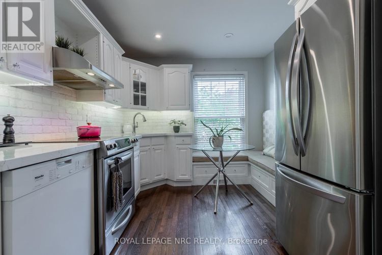 Nestled on a tree-lined street overlooking Twelve Mile Creek, in one of the city's most cherished historic neighborhoods, this elegant Cape Cod updated residence seamlessly blends timeless architecture with refined charm. From its pitched rooflines and classic dormer windows, every detail of this home has been thoughtfully designed to capture the essence of Old-World sophistication. Step inside to discover light-filled interiors with warm hardwood floors, Archways, French doors, and artisan-crafted millwork. You're immediately drawn down the hall to the Family Room filled with glass windows, but your journey begins at the entrance where french doors invite you to the Living Room featuring a decorative fireplace mantel. The formal Dining area is perfect for entertaining larger gatherings. Nearby is a Chefs Kitchen with ample cabinetry, accent doors, stone countertops, and a brick-style backsplash. A bonus built-in Breakfast Nook offers a cozy spot to enjoy your coffee and morning read.Through the Family Room windows, lush, meticulously landscaped gardens create a living tapestry of greenery and color, offering serene views that change beautifully with the seasons. The private garden is easily accessible and perfect for alfresco dining and entertaining, with a low-maintenance design that includes an integrated sprinkler system for effortless upkeep. Upstairs, spacious Bedrooms provide tranquil retreats with picturesque views. The basement(poured concrete), brightened by three windows, offers a blank canvas ready to be transformed into the space whether a home office, media room, or guest suite. Rich in character and beautifully maintained, this home is within walking distance to parks, trails, St. Catharines Golf & Country Club, downtown boutiques, cafés and cultural landmarks. Updates C/A '23, Furnace '22, Deck & Patio '23, Kitchen '19 & Baths '20, Roof & Windows '17. (id:26452)