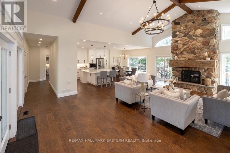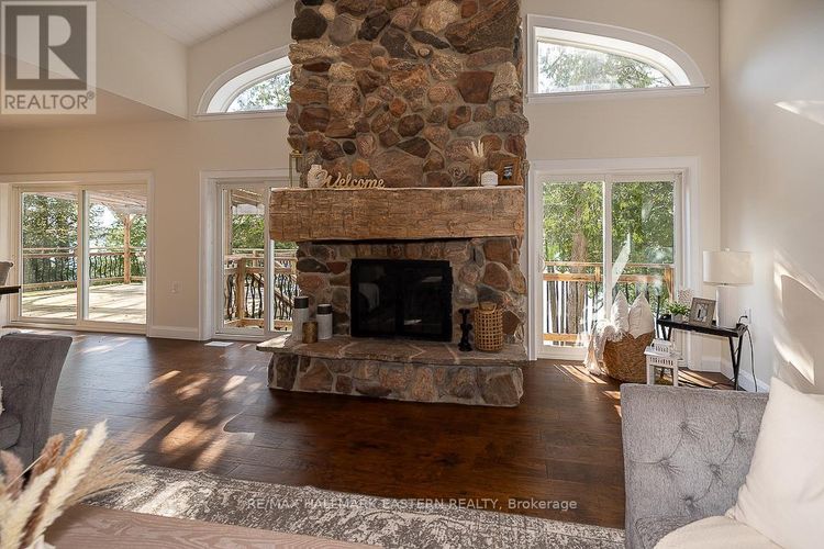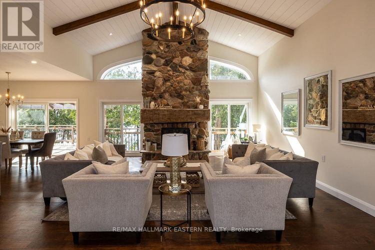 Immerse yourself in a fusion of nature and comfort on one of the most sought after locations on Balsam Lake, "Indian Point Rd." Fresh, new on trend interior with wood, stone and a clean white palette to suit all styles. 5 Bed/4.5 Baths, including a fabulous split floor plan. Main floor primary suite, laundry, great room with soaring ceilings, floor to ceiling fieldstone fireplace, open concept chefs kitchen outfitted with impressive quartz island, 6 burner gas range, all overlooking stunning water views. The lower level family room with lovely wet bar, oversized sauna and additional bedrooms offers plenty of room for family and friends. Fully backed up generator, electric car plug in, room for all the toys, in the 6 bay oversized garage, and just 1.5 hrs to GTA . Walk on trials, skate on the frozen lake, snowmobile into pristine forests, kayak, tennis, fishing, swim and so much more. This spacious beauty is ready to go for the waterfront dream you have been waiting for. (id:26452)