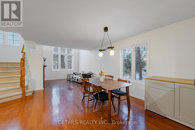 Located in the well-connected community in Bells Corner, this freshly painted, beautifully maintained Upper Level END unit Terrace home offers over 1500 sqft super bright and airy living space. The Soaring Vaulted ceiling and Stunning 2 story windows flood the open concept Living and Dining area with tons of natural lights. Elegant hardwood flooring spans the Living/Dining area anchored by a cozy gas fireplace. The inviting eat-in kitchen features ample cabinetries, a generous center island, and newly updated, sleek and modern, white Quartz countertops, with a sliding door leading to South facing balcony- perfect for morning coffee or sunset views. One of the highlights upstairs is the versatile and capacious loft, which can be your home office, workout area, relaxation area, or Kids' playroom. Two bedrooms are well proportioned and spacious, and the primary retreat features large WIC, 4 pc cheater ensuite, and another private balcony. This home is ideally located, with quick access to HWY 416 and 417, minutes from shops, transits(including upcoming LRT phase 2), bike paths, Scenic NCC Greenbelt trails, and DND HQ. With the long list of recent updates, this home for sure provides you and your family peace of mind for years to come. Most recent updates include: freshly painted wall throughout (2025), Kitchen Quartz counter, sink, and faucet (2025), AC(2021), Furnace(2021), HWT(2021), refrigerator(2020), 2 faucets in bathrooms(2025)